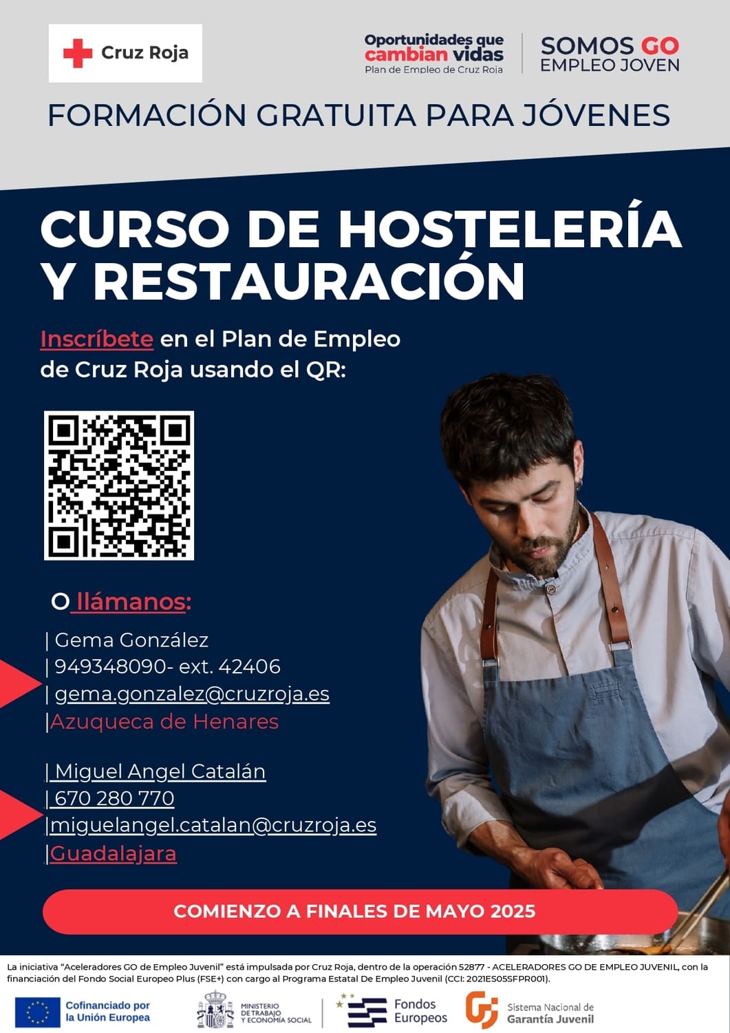 - Curso de Hostelería y Restauración: Aprende a desenvolverte en cocina, atención en sala y restauración, con inicio a finales de mayo de 2025. Ideal para quienes desean trabajar en bares, restaurantes u hoteles.