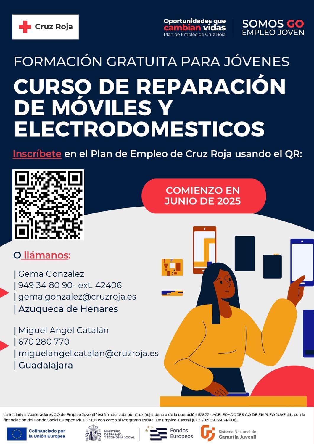 - Curso de Reparación de Móviles y Electrodomésticos: Formación gratuita para jóvenes con el plan de empleo de la Cruz Roja. Comenzamos en junio.